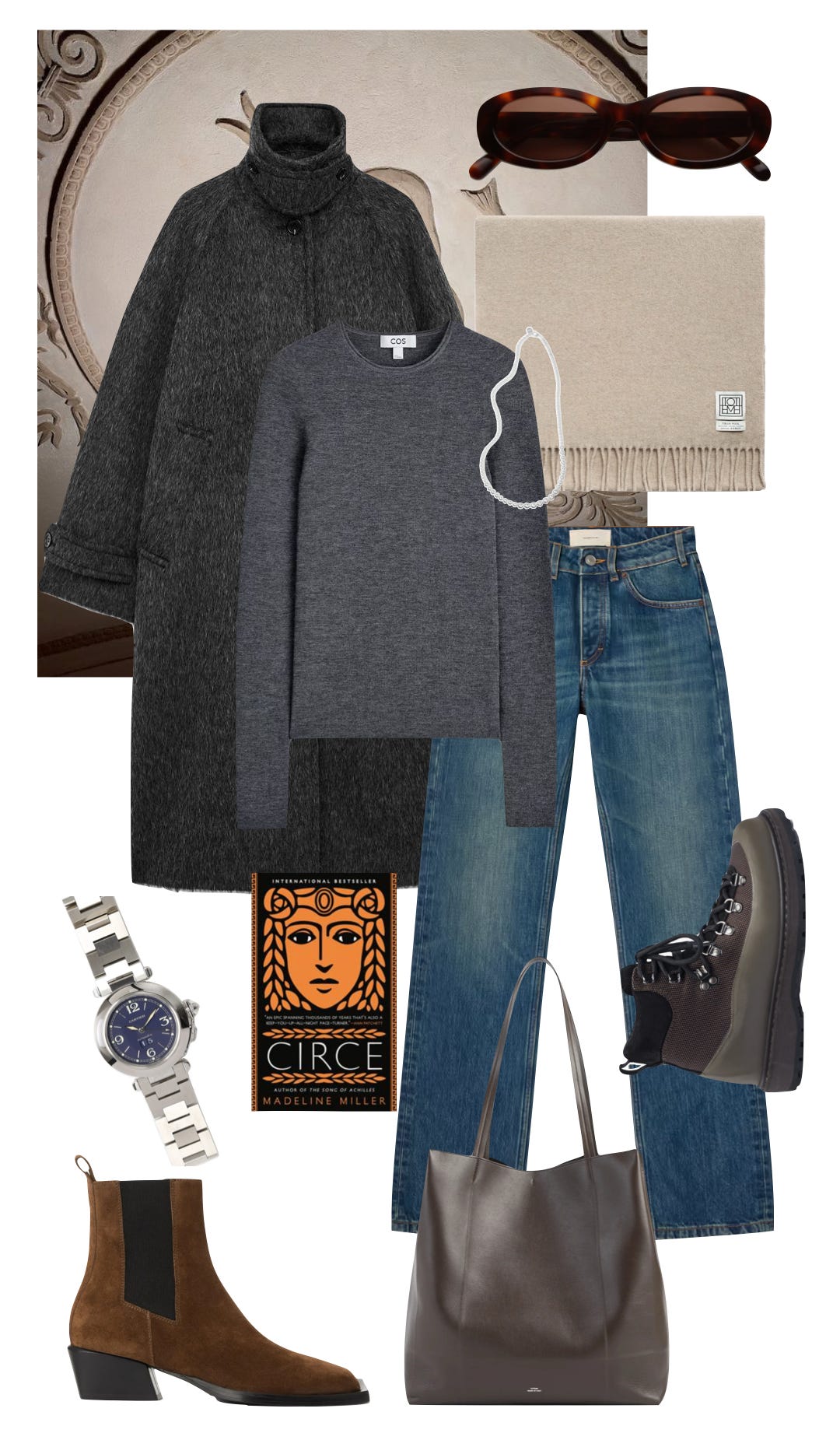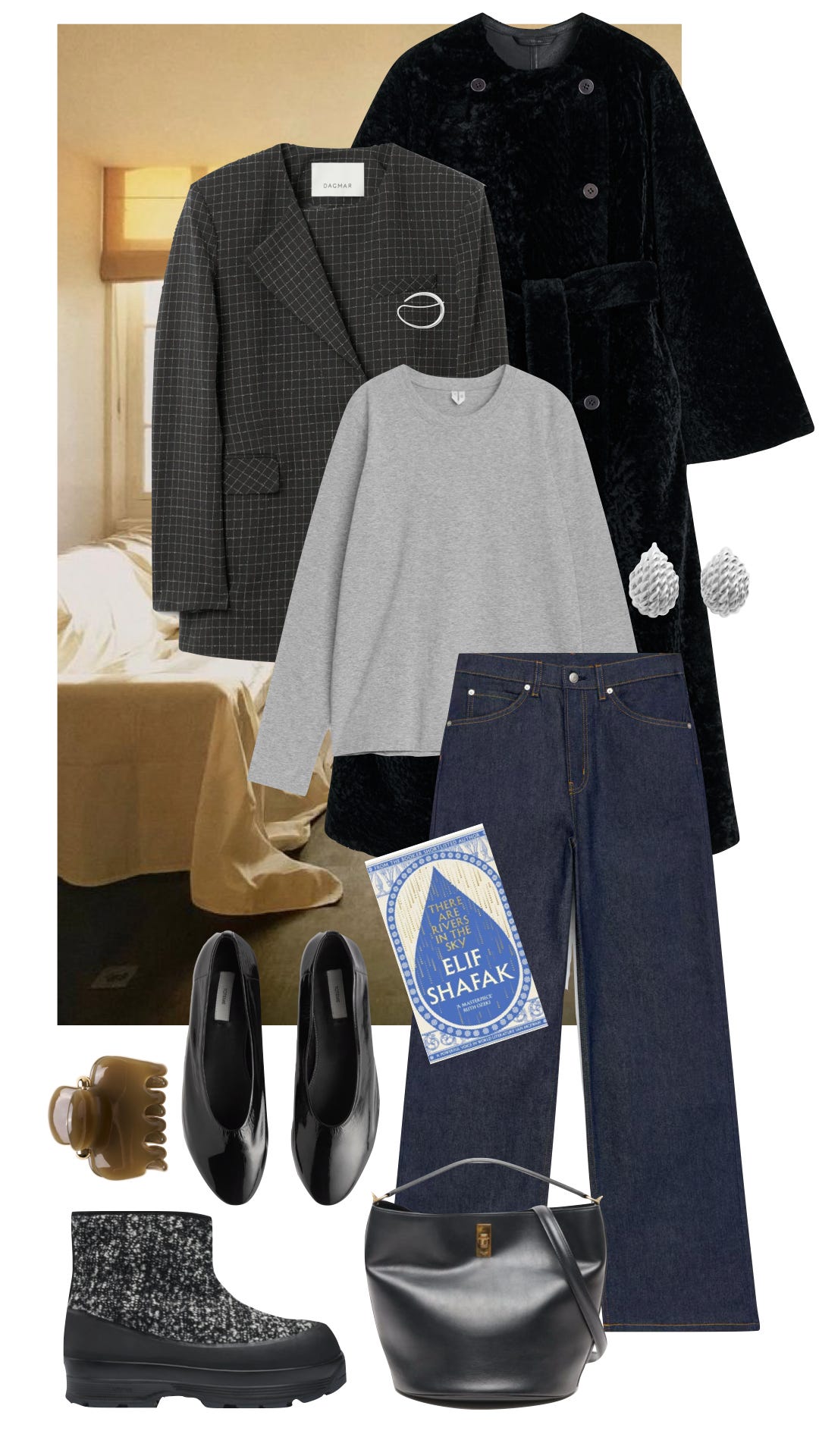 She also emphasized how much impact jewelry can have on a simple base. That feels especially relevant this time of year, when we’re still very much in coats and knits. Sculptural earrings à la Lie Studio, necklaces from Pura Utz or Limkilde, a By Malene Birger “Henna” brooch pinned to a coat, or a chunky silver ring from MH925 can do some of the work that brighter colors and lighter fabrics will take over later in spring.