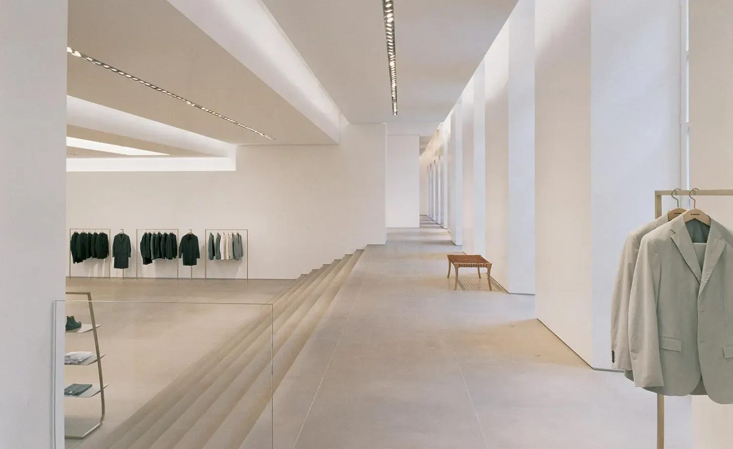 After seeing Alex Eagle share the Calvin Klein Collection store from 1993 on Instagram, I fell into a bit of a John Pawson rabbit hole. Pawson designed several Calvin Klein stores in the mid-90s and helped define that extremely restrained retail language of the era. Around the same time, Jil Sander was building a similarly minimalist world in her stores with architect Michael Gabellini. Different architects, but very much the same moment in fashion.