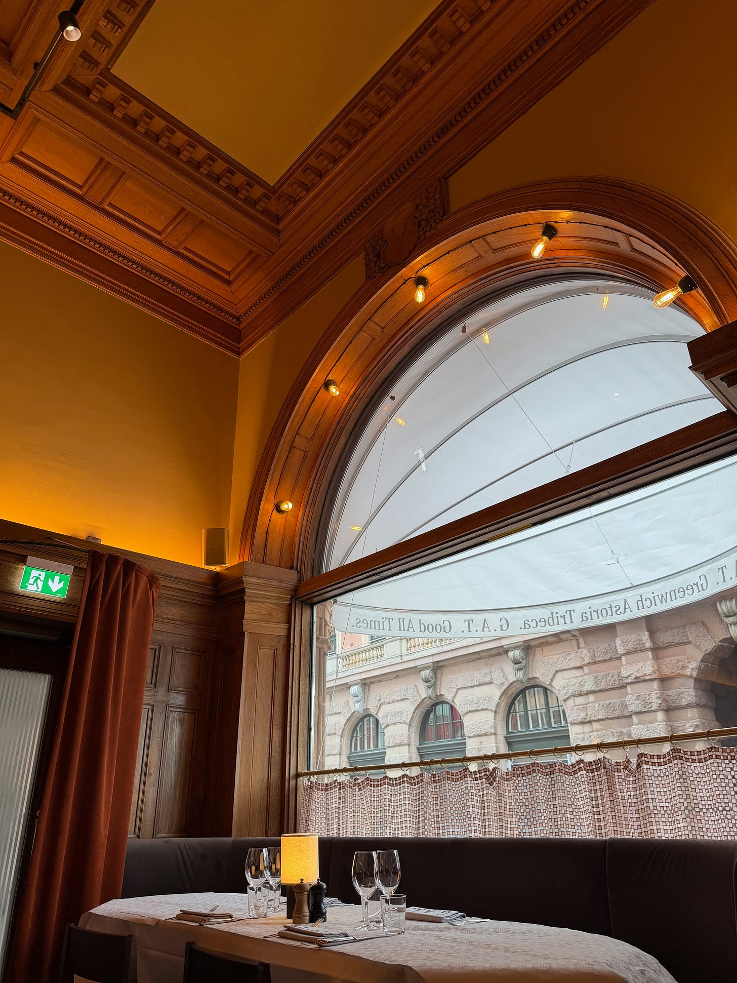 The restaurant sits inside Davidssonska huset, a building from 1896. Swedish architect Andreas Martin-Löf designed the interiors and worked carefully with the original architecture, preserving the beautiful wood paneling and historic details rather than replacing them. Monocle just wrote about the place.