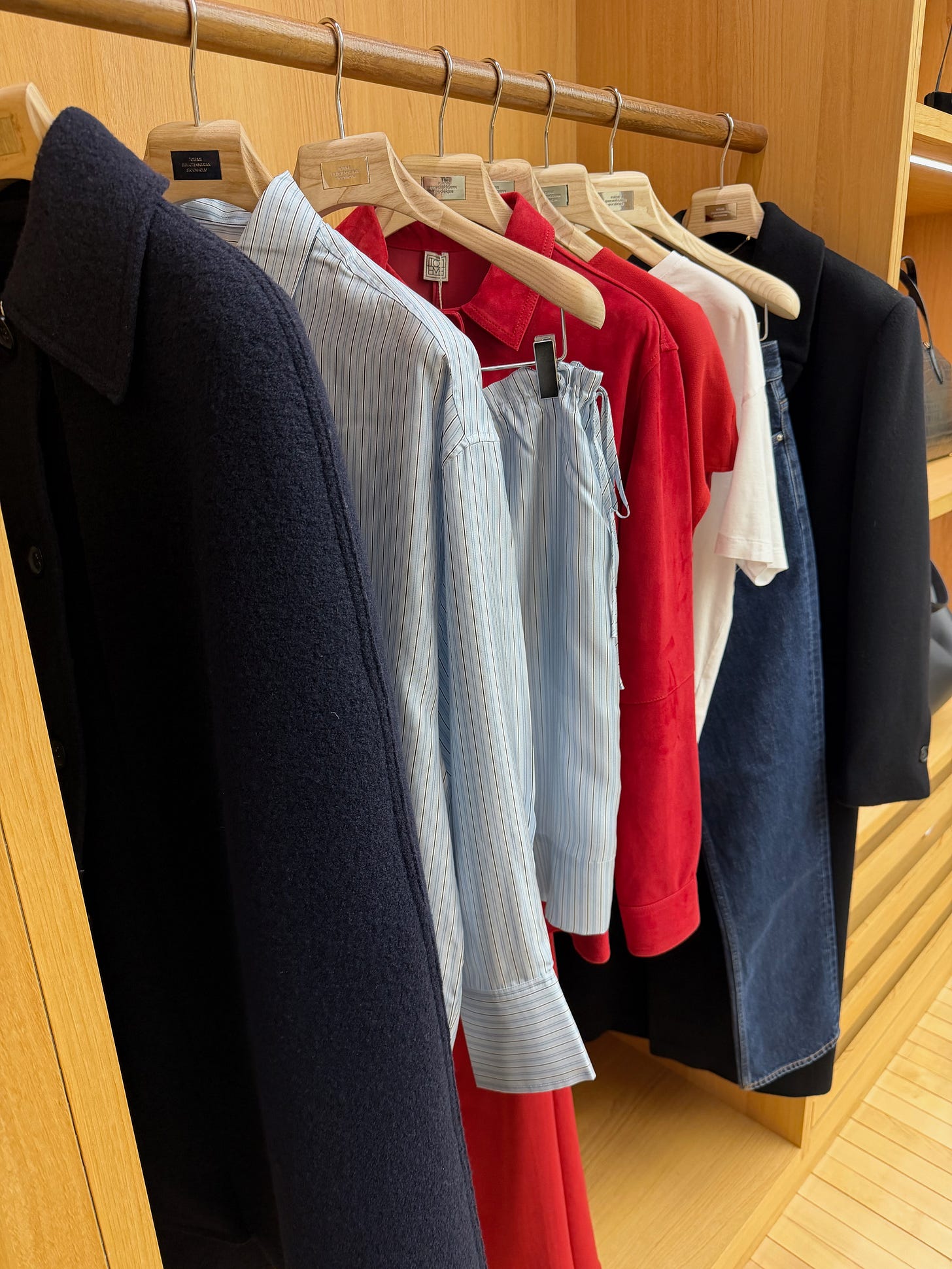 This rack at Toteme was speaking my language – navy, denim, light blue and a pop of red.