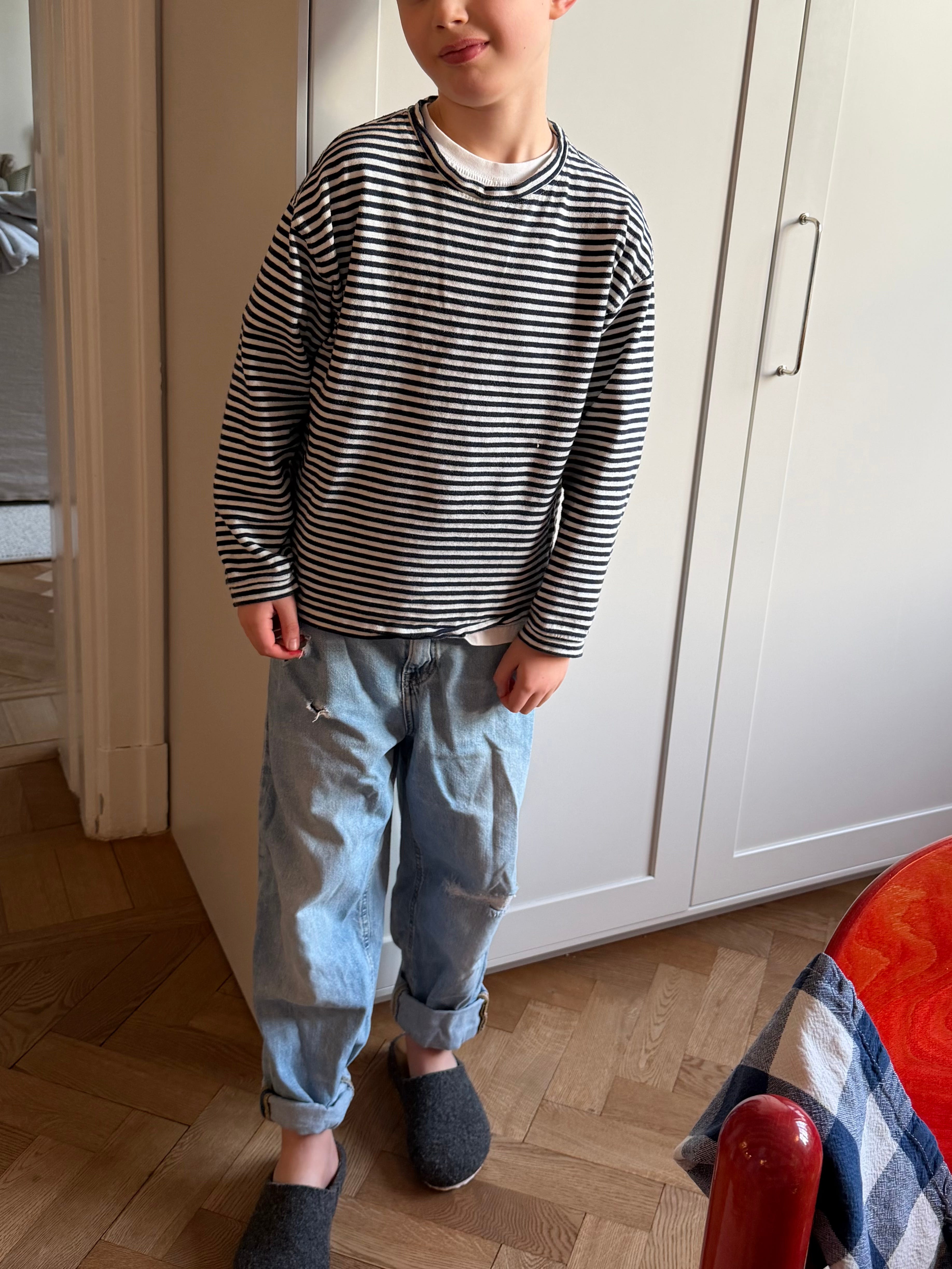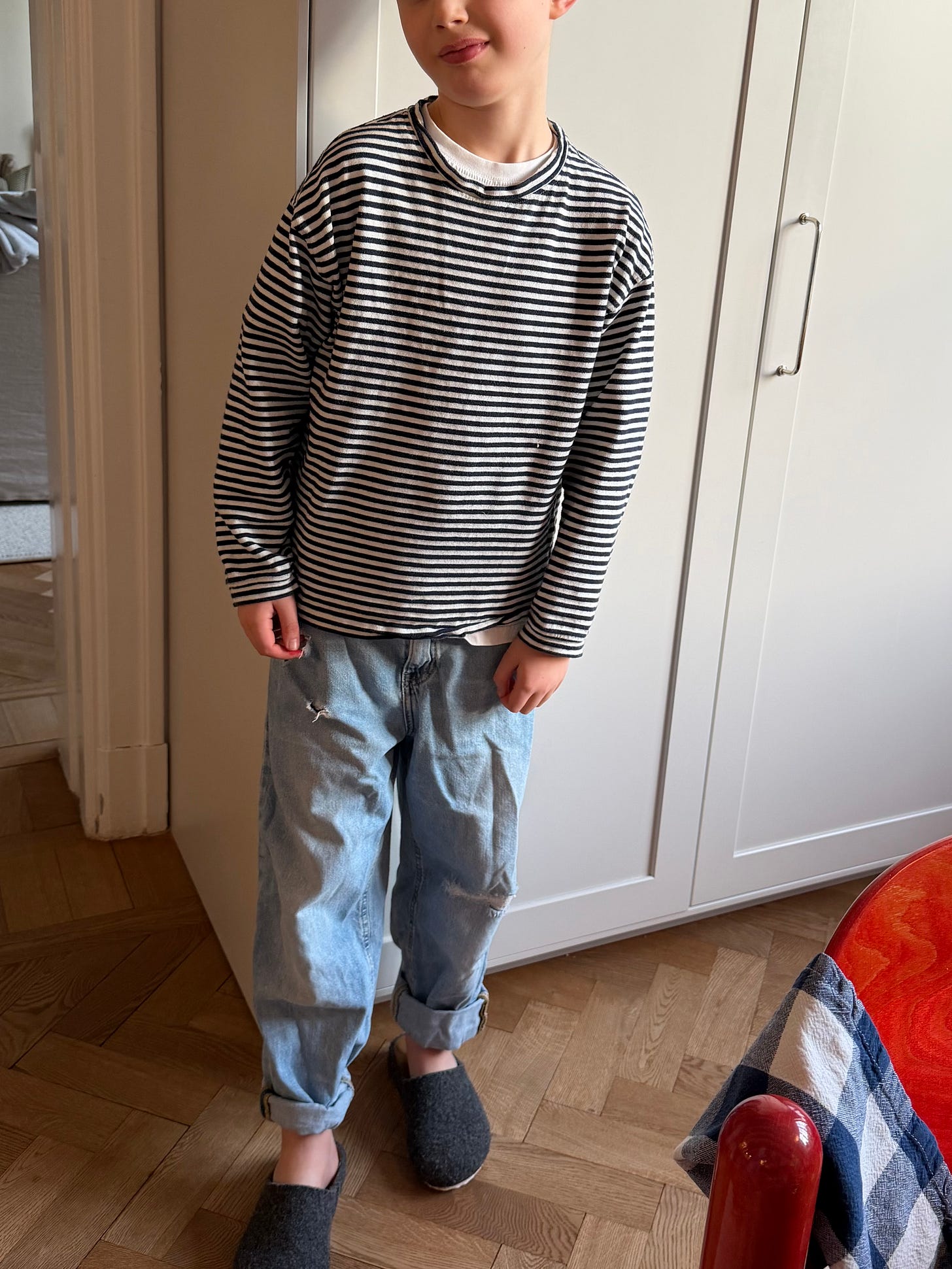 My eight-year-old son is my current style guru. He walks out of his room every morning in laid-back combinations like this, completely unbothered. He also loves wearing a cardigan over his Ed Sheeran concert tee. The whole vibe feels very Kelly Klein-esque, no?