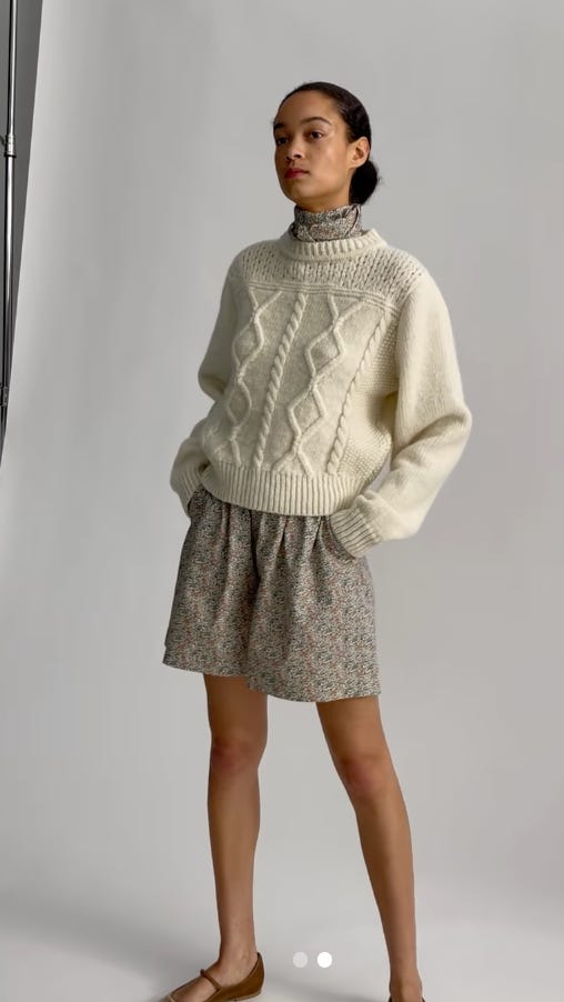 And the last thing on my list for today is this terribly blurry screenshot of Skall Studios new Liberty fabrics drop. I adore this styling with the fisherman knit.